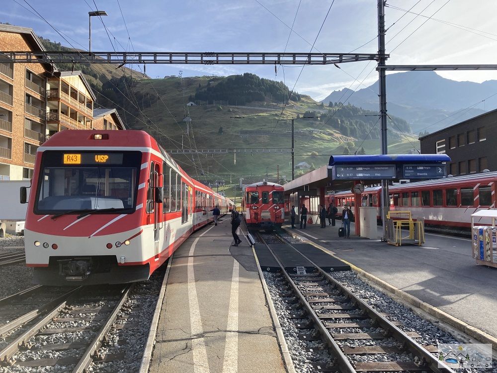 Puhhh, bis wir wussten oder mitbekamen wohin nun?? Dies war gar nicht so einfach, denn es war nirgendwo angeschrieben. Durch andere Passagiere bekamen wir mit, dass es einen Ersatzbus oder besser gesagt Ersatzbüssli gibt über den Oberalppass bis nach Andermatt.. Dieser war nur mit 5 Personen besetzt inklusiv uns. Die Fahrt war sehr rasant, den die Bahnstationen waren ja nicht an der Hauptstrasse. So mussten wir in jedes kleine Dorf fahren und dies meistens oberhalb vom Dorf. Trotzdem waren wir fast pünktlich in Andermatt.