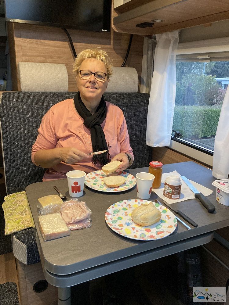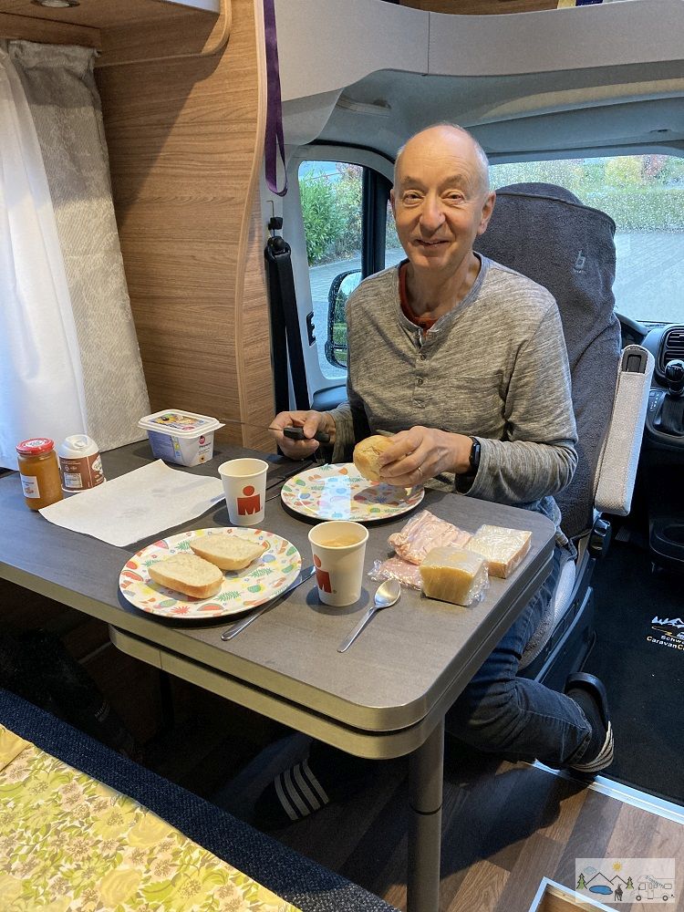 Die Nacht regnete es immer mal wieder, doch wir schliefen bestens. Erwin wollte noch etwas am Camper schauen und so fuhr Anita mit dem Bike alleine ins Dorf etwas shoppen. Leider regnete es immer mal wieder und so blieben wir meistens drinnen. Anita las im Tolino und Erwin in Gebrauchsanweisungen vom Lofti. Da wir an diesem Platz Strom inklusiv hatten, benutzten wir unser Elektro-Öfeli. Abends gabs eine Suppe mit Fleisch und Brot.
