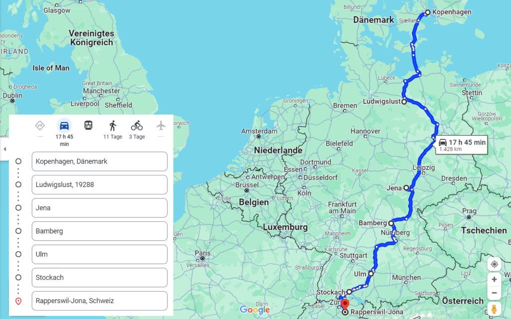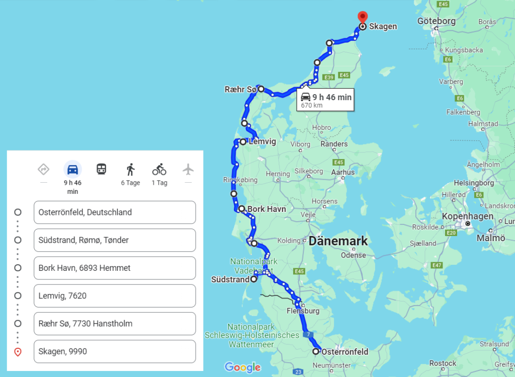 Hier findest du die Angaben unserer Reise vom 01.05 bis 17.06.2024 mit dem Lofti Wohnmobil durch Deutschland (D) – Dänemark (DK) – „Schweden (S)“.