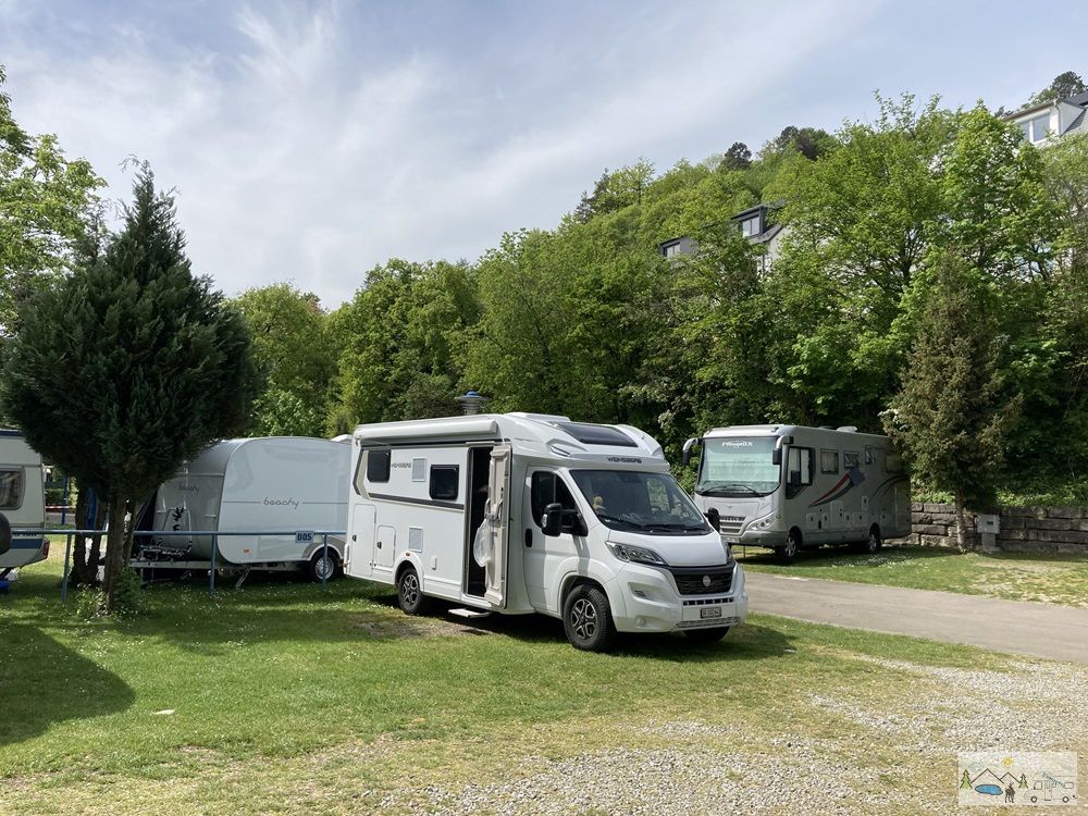 Die freundliche Dame beim Neckar-Camping in Tübingen zeigte uns die freien Plätze. Wir entschieden uns für Platz D05. So waren wir nicht zu stark in der Wiese, da die Wettervorhersage nicht ganz so schön war.