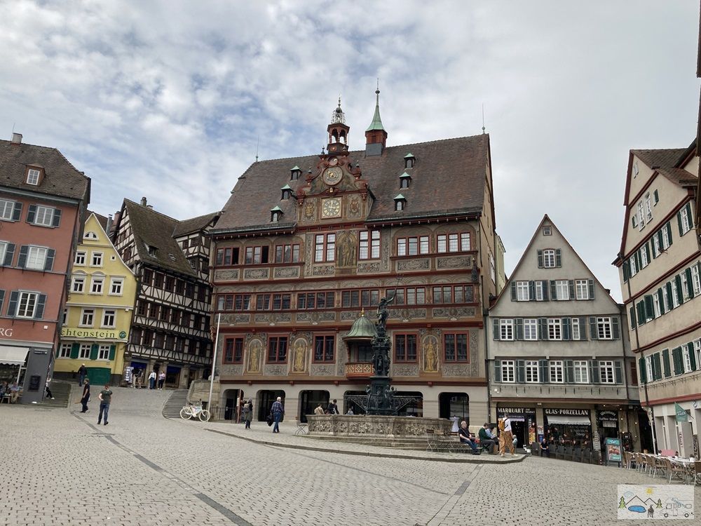Wir trafen dann Uschy in der Stadt, da sie noch einen Arzttermin hatte. Sie zeigten uns die Altstadt von Tübingen mit vielen schönen Erklärungen dazu. Wir erfuhren hier auch, dass Uschy’s Eltern ein Geschäft hier hatten und sie da aufgewachsen ist. Da die Sonne schien, sassen wir beim Rathaus draussen und tranken feinen Wein. Sogar das Silikon Vallay von Tübingen zeigte uns Rainer. Zum Vesper fuhren wir essen in den Schwärzlocher Hof. Ein sehr alter Gasthof mit grossem Biergarten. Leider war es dafür zu kühl. Doch auch der Innenteil ist sehr schön gemacht. Anschliessend fuhren wir noch zu Caroline (ihre Tochter). Es war lustig sie wieder mal zu sehen, den Anita sah sie sicher seit mehr als 20 Jahren nicht mehr. Am Schluss wurden wir wieder zum Camping gebracht, kurz bevor es zu regnen begann.