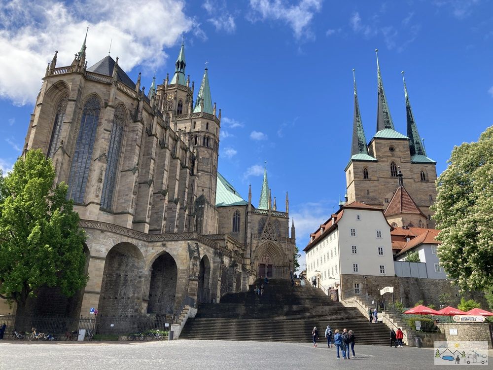 Leider konnten wir erst am Mittag los, da es immer mal wieder regnete. Heute standen die Sehenswürdigkeiten der Stadt auf dem Programm. Eigentlich wollten wir auch noch in den Egapark. Da unser Stellplatz-Nachbar erzählte, es sei eine doofe Zeit, da verschiedene Blumen verblüht sind und die nächsten noch nicht richtig blühen würden, vertagten wir dies auf den nächsten Besuch in Erfurt. Die Temperaturen waren auch nicht so angenehm. Wir mussten auch Nachts immer heizen, den oft war es um 10 Grad rum.
