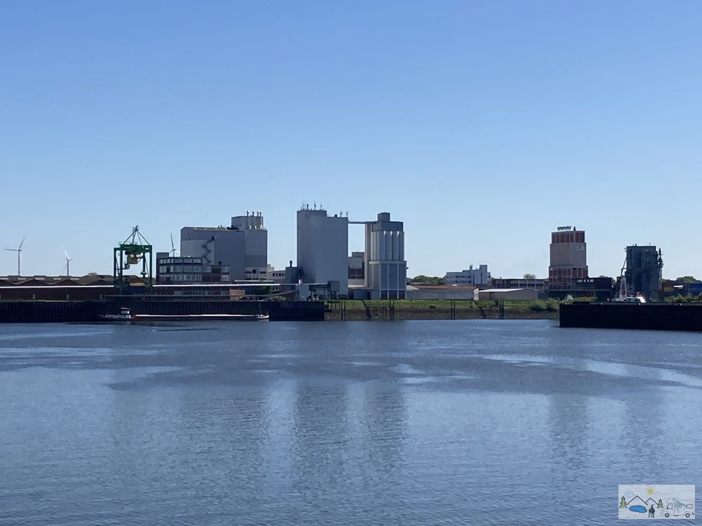 Heute mussten wir ja nochmals nach Bremen fahren, um die Karte zu holen, da nur bis 10 Uhr jemand auf dem Stellplatz ist, mussten wir früh raus. Dies hatte jedoch den Vorteil, dass wir noch Hasen um unseren Camper sahen. Um 8 Uhr fuhren wir ab, da wir nicht in den Rückreise Verkehr kommen wollten. Um 9:15 Uhr waren wir vor Ort und erhielten, welch ein Glück, die Karte wieder. Anita war sooo froh und konnte wieder beruhigt „schlafen“. Nach 11 Uhr waren wir wieder auf unserem Campingplatz. Nun aber schnell die Bike’s raus, rauf auf den Sattel und Richtung Hafen. Natürlich durfte auch der Wasserturm der „Schweizer Auswanderer“ nicht fehlen. Hier genehmigten wir uns Kaffee und Kuchen. Abends konnten wir wieder draussen sitzen.