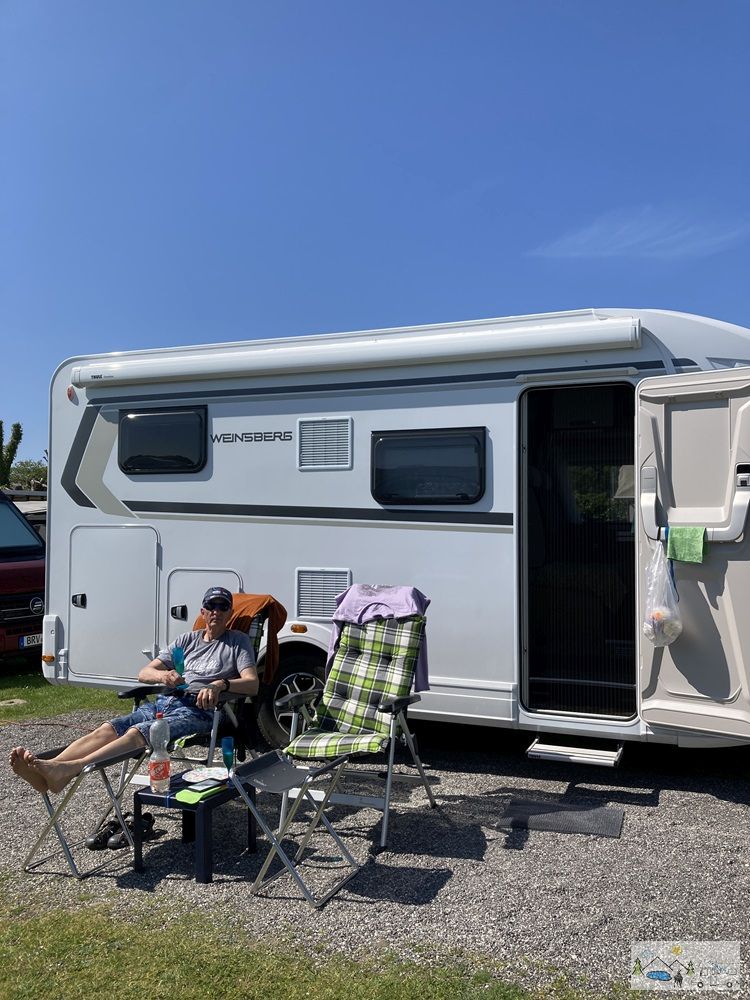 Unser Platz auf dem Camping Wattenlöpper ist sehr schön und gross. Das Wetter sehr sonnig und warm, aber der Wind🫢 Trotzdem konnten wir draussen etwas Sonne tanken. Fürs Abendessen wurde der Grill angeschmissen und wir konnten sogar draussen essen, natürlich mit Langarm-Shirt.