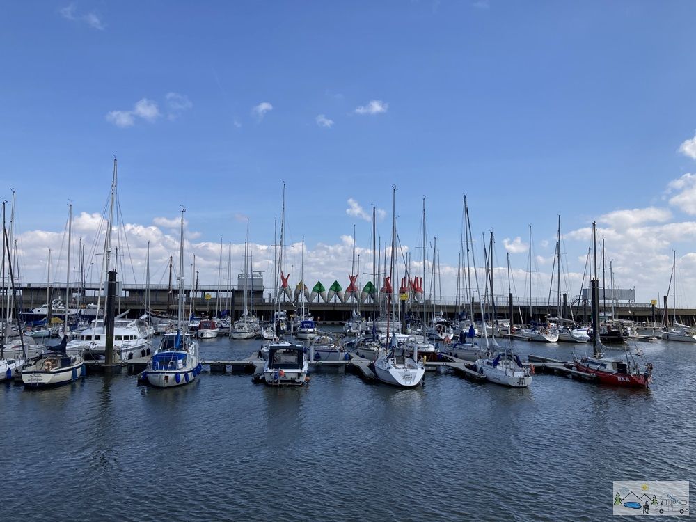 Mit dem Bike fuhren wir zur grossen Schleuse vom Nord-Ostsee-Kanal, um Schiffe zu gucken. In einem Restaurant gleich an der Schleuse genehmigten wir uns zuerst einen Apero und wollten anschliessend im Camper kochen. Doch es war so spannend, da auch noch der Gäste-Jachthafen gleich daneben war. So blieben wir länger und somit assen wir auch gleich dort. Anita bekam eine Spargelpizza und Erwin bekam Fisch.