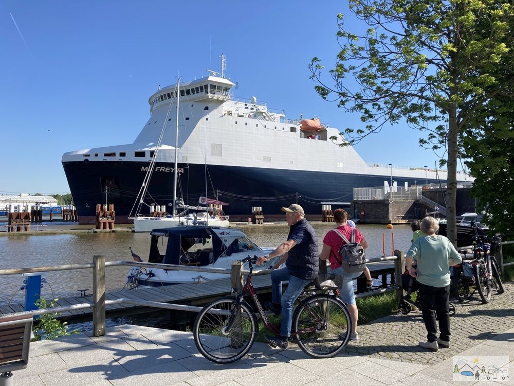 Nach dem Frühstück fuhren wir mit den Bike’s in den Ort. Leider war der nicht so gross. Doch wir fuhren noch an den Hafen. Bei der Ziehbrücke, die den Ort verbindet, kam gerade ein Frachtschiff rein. So schauten wir natürlich gleich zu, wie die Brücke hochgezogen wurde und nach der Durchfahrt wieder runtergelassen wurde. Schlussendlich fuhren wir „Heim“ zum Camper, den es wartete ein feiner Apero auf Erwin. Schliesslich muss sein Tag gefeiert werden. Eigentlich wollte Anita mit Erwin essen gehen, doch es fand sich, wie öfters, kein richtiges Essenslokal. Zum Kebab wollte sie nicht. So wird heute Abend halt eben wieder selbst gekocht.