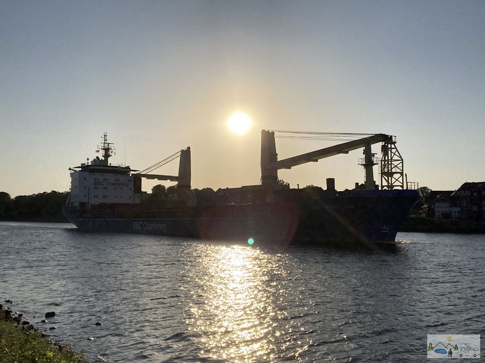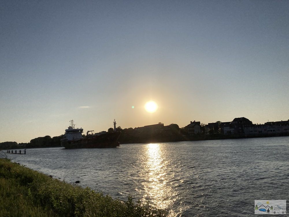 Heute fuhr Erwin mit dem Bike in einen Campershop. Anita blieb im Lofti und schaute am PC wohin weiter, den das Wetter sollte regnerisch werden. Danach fuhren wir zur Flora 24. Dies ist eine Garten und Blumenausstellung hier in Osterrönfeld. Es war sehr schön und erstaunlich, dass kein Eintritt verlangt wurde. Bei dieser Messe findet man alles rund um den Garten, von Blumen bis zum Solarpanel für’s Gartenhäuschen oder sogar Sauna. Da wir in diesem Bereich nichts brauchten, gönnten wir uns aber eine Räucherwurst mit Brot, die sehr lecker war. Anschliessend mussten wir noch Wein kaufen, den wir fahren ja am Montag nach Dänemark und dieser soll dort sehr teuer sein. Abends fotografierten wir noch den Sonnenuntergang mit Schiffen im Nord-Ostsee-Kanal.