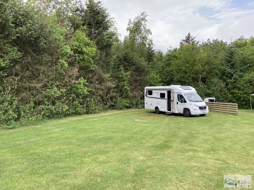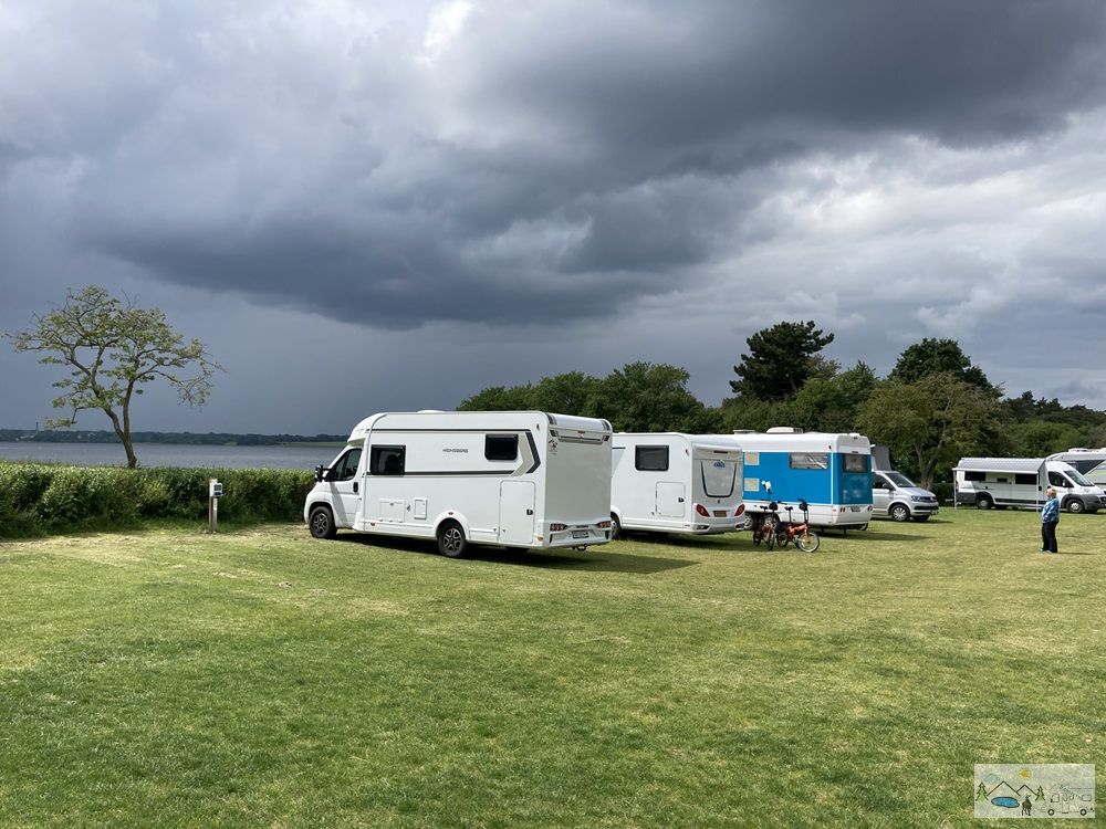 Wir kamen kurz vor der Mittagspause an und erhielten einen schönen Wiesenplatz mit Aussicht auf den Fjord. Der Platz ist ziemlich gross. Dazu steht man an einer internen Campingstrasse, wo jeder vom Camping durchfährt. Auch ist gleich hinter uns das grosse Trampolin. Da wird es im Sommer sicher ziemlich laut sein.