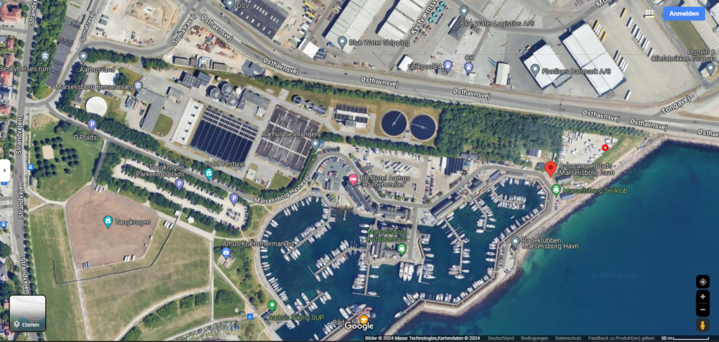 Heute wurden wir leider mit Regen geweckt. Unsere Fahrt bis nach Aarhus war auch regnerisch. Dazu kam noch eine Umleitung, durch eine Strassensanierung, sodass wir über eine kleine Nebenstrasse fahren mussten. Gut hatte es da nicht so viel Verkehr. Durch die Stadt bis zum Stellplatz am Hafen kamen wir gut voran. Leider musste man am Platz zuerst schauen, ob es noch einen freien Platz hat, bevor man einchecken konnte. Erwin musste mit dem «Friesennerz» zuerst an den Platz und dann noch zum Hafenmeister und dies bei strömendem Regen.