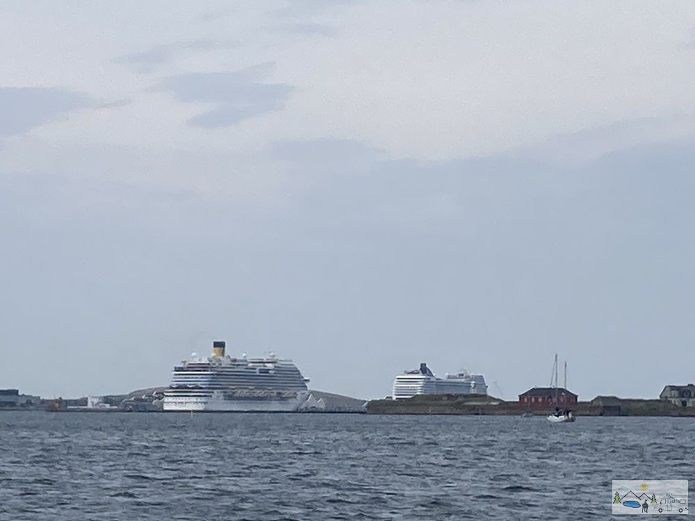 Nun stand die Stadt auf dem Programm. Doch auch hier wurden wir wieder abgelenkt, da es eine Bühne gab, mit guter Musik. Also machten wir dort eine Pause und hörten der Musik zu. Schlussendlich fuhren wir zum Cruise Hafen und sahen die AidaMar, die dort vor Anker lag. Abends um 19.30 Uhr sahen wir sie von unserem Wohnmobil Stellplatz wieder weiterfahren. Zu aller Letzt waren wir dann am neuen Hafen. Dort gab es sehr viele neue Gebäude mit Wohnungen, alle am Wasser und mit viel Glas.