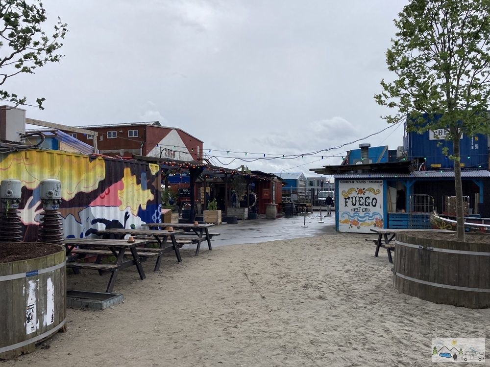 Am Nachmittag war es dann trocken und so fuhren wir mit den Bike’s zu den Street Foods Hallen. Hier gab es so viele leckere Sachen, wir hatten echt die Qual der Wahl. Schlussendlich entschlossen wir uns für Indisch und Griechisch. Danach suchten wir noch den Nespresso-Shop, da wir fast keine Espresso-Kapseln mehr hatten. Der Preis war fast identisch wie in der Schweiz. Dies hätte Anita nicht gedacht, denn sie dachte sie seien teurer. Schlussendlich fuhren wir zum Lofti, sassen noch etwas draussen und schauten aufs Wasser. Da kamen wir dann mit unseren Nachbarn ins Gespräch, die aus Münster waren. Es war ein nettes Paar und wir haben uns gut unterhalten.
