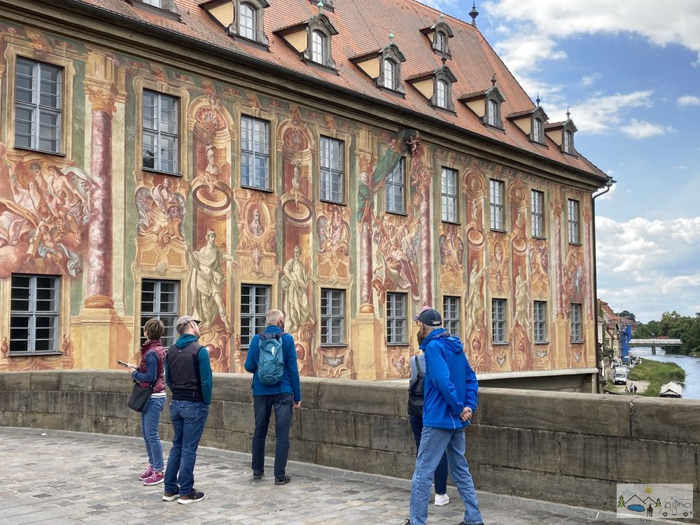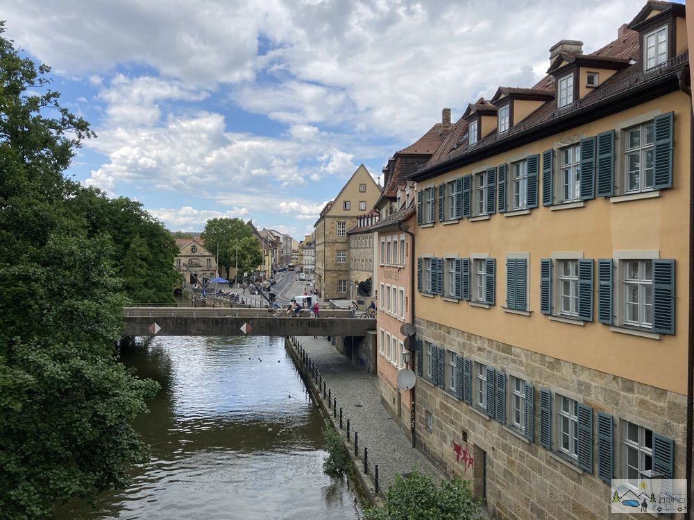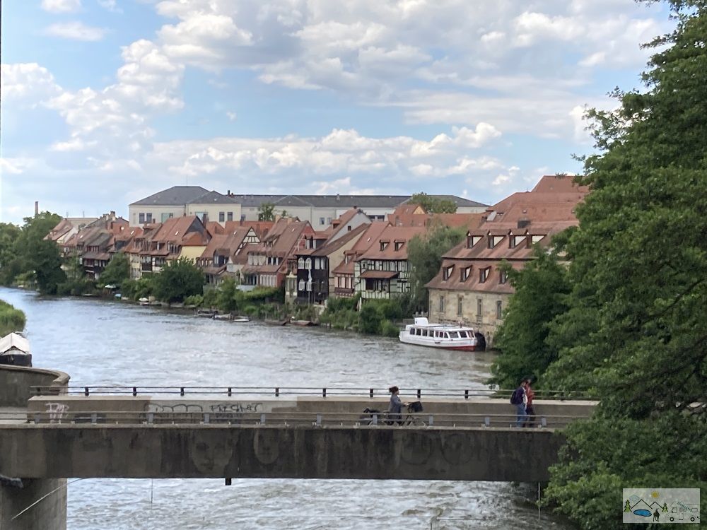 So heute waren wir gescheiter und suchten uns schon am Morgen ein Ziel aus, den wir wollten nicht den ganzen Tag nur fahren. Wir entschlossen uns für den Stellplatz in Bamberg. Anita wollte schon lange mal dahin, da sie von hier Ihre Weihnachtskugeln gekauft hatte. Gesagt getan, wir fuhren direkt nach Bamberg, dieses Mal ohne Umweg. Nach dem Mittag waren wir schon dort und so konnten wir gleich in die Stadt mit den Bikes fahren, nur 3km. Dank «google» fanden wir den Verkaufsladen schnell. Leider fanden wir nichts was uns gefiel und den Camper-Anhänger als Baumschmuck gibt es leider nicht mehr. 😥 Schlussendlich bummelten wir durch die Stadt und besichtigten den Dom. Bamberg ist sehr schön und hat uns gut gefallen. Heute Nachtessen in der Stadt. So suchten wir ein Lokal, wo es vielleicht Haxen für Erwin gibt. Ja, wir wurden fündig. Haxen mit Kraut und Knödel für Erwin und Anita bekam Käse-Spätzle mit Salat, war sehr lecker. Danach fuhren wir mit den Bikes wieder zum WoMo Lofti.