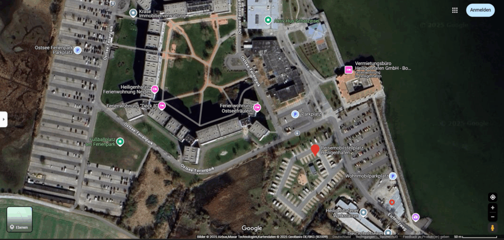 Unser nächstes Ziel Stellplatz in Heiligenhafen, kurz vor der Insel Fehmarn.
