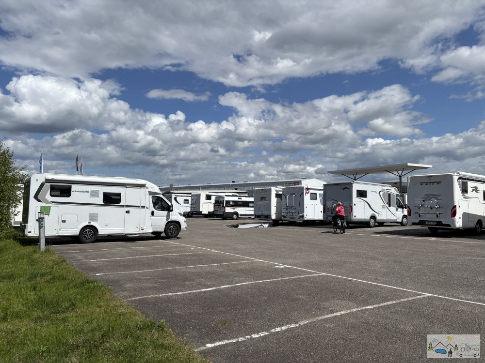Gegen 15 Uhr war es trocken und so fuhren wir mit dem Velo noch ins Industriegebiet zu einem Camping-Fahrzeug-Händler. Vielleicht finden wir dort einen Deckel für unsere Toiletten-Kassette, der ja seit Erwin’s Missgeschick fehlt. Leider nein. Nun gut, dann wars wenigstens etwas Bewegung.