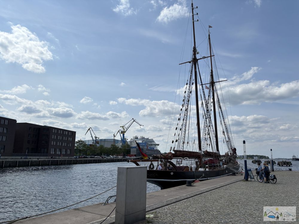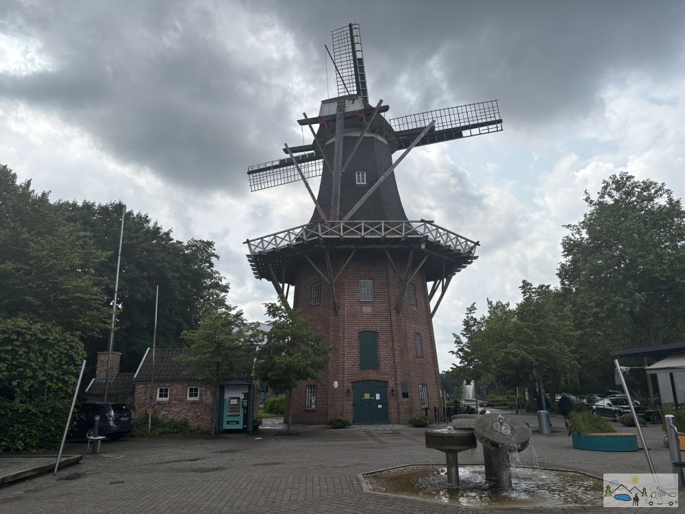 Natürlich regnete es mal wieder beim Aufstehen und auch durch den Tag. Der Weg bis zur Bushaltestelle, wo der Bus uns in die Meyer Werft fuhr, war aber gleich um die Ecke bei der Meyers Mühle.
