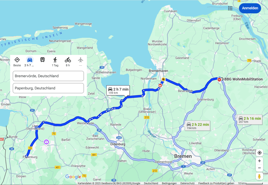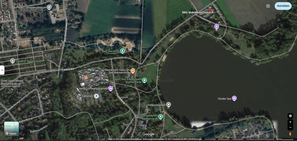 Unser Ziel der Stellplatz in Bremen, wo wir letztes Jahr schon übernachteten. Wir nahmen den gleichen Platz wie im Jahr 2024. Es war jedoch sehr kalt und man wusste nie, wann es zu regnen beginnt.