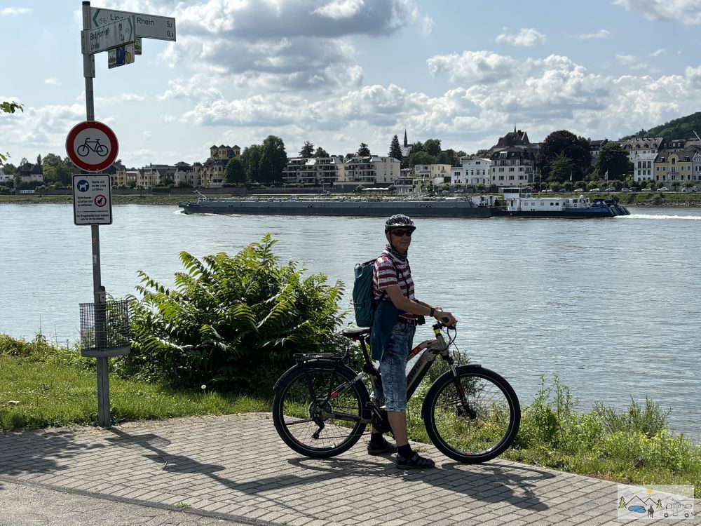Frisch gestärkt führte uns der Weg weiter, alles wieder schön am Rheinufer entlang, bis nach Bad Breisig, wo wir wieder die Fähre rüber nahmen. Hier dann wieder zum Camping und schon hatten wir 43 km (siehe letztes Foto) auf dem Zähler.