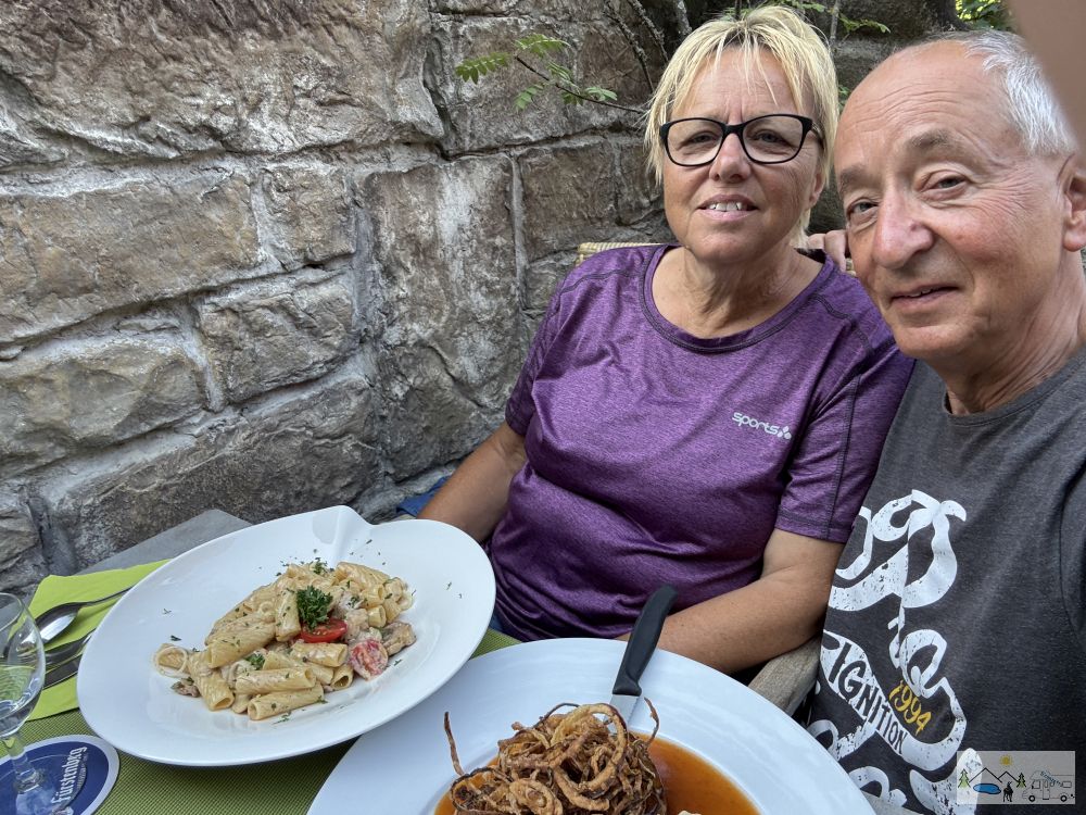 Um 18 Uhr fuhren wir mit ihnen Beiden in ein Restaurant, wo sie mit den ehemaligen Kegelfreunden abgemacht hatten. Gekegelt wird nicht mehr, doch man trifft sich 1x im Monat zum Essen. Das Essen war lecker, denn sie wussten auch nicht wie es schmeckt, da es einen neuen österreichischen Wirt gab. Unserer Meinung nach, darf er bleiben!😋